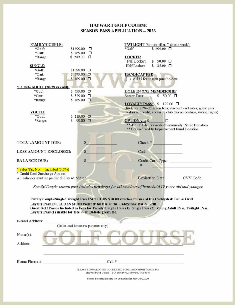 Season Pass Application Form